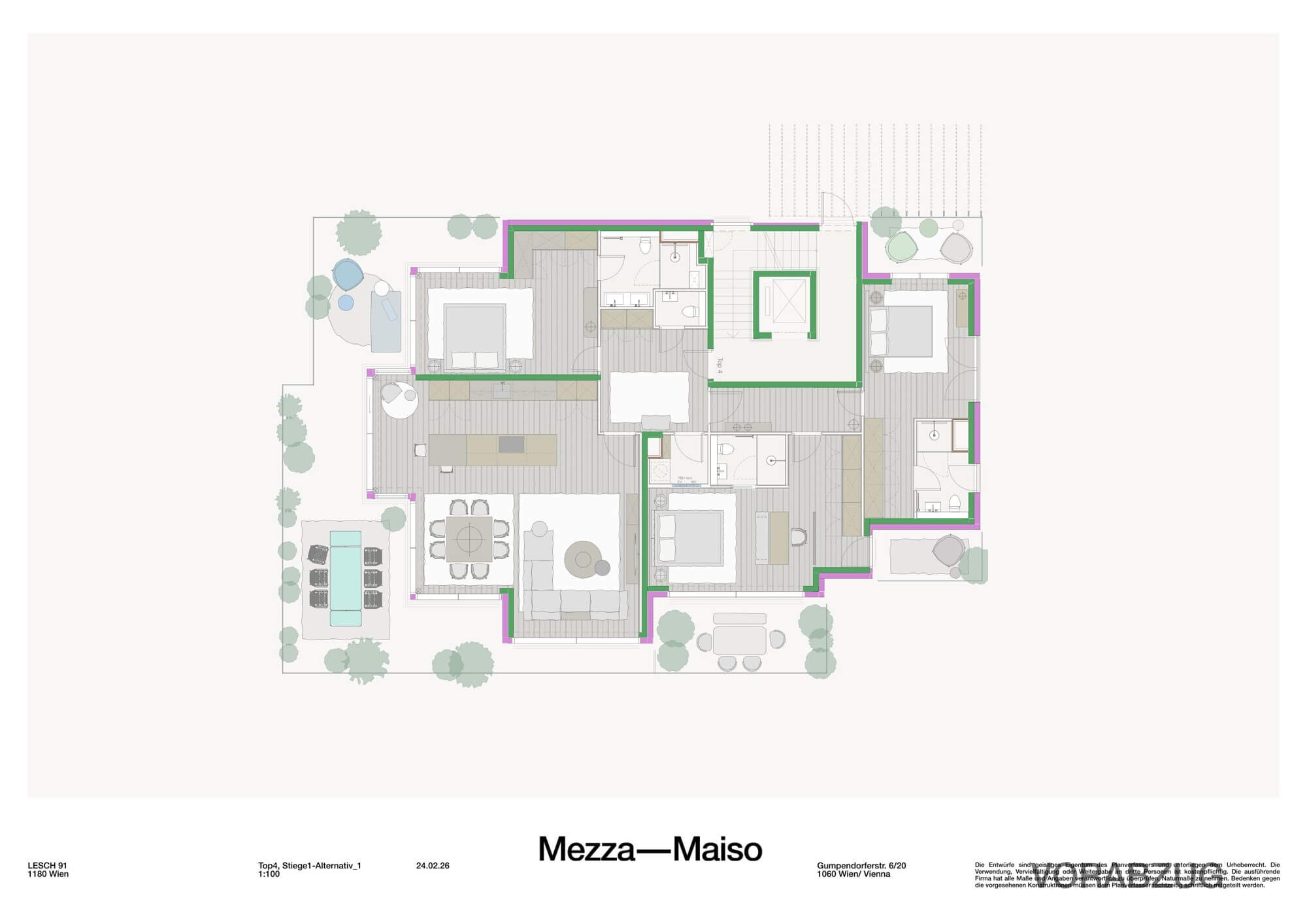 The residential project THE SUPERIOR in Vienna’s 18th district combines exceptional architecture with one of the city’s most sought-after elevated locations on the Schafberg. Set within an exclusive villa neighborhood, eleven high-quality residences are being created, offering living areas ranging from approximately 55 to 225 m². Each apartment is complemented by spacious terraces, balconies, or private gardens. The unique hillside setting opens up impressive views over the city and the surrounding hills, creating a remarkable living atmosphere above the rooftops of Vienna.