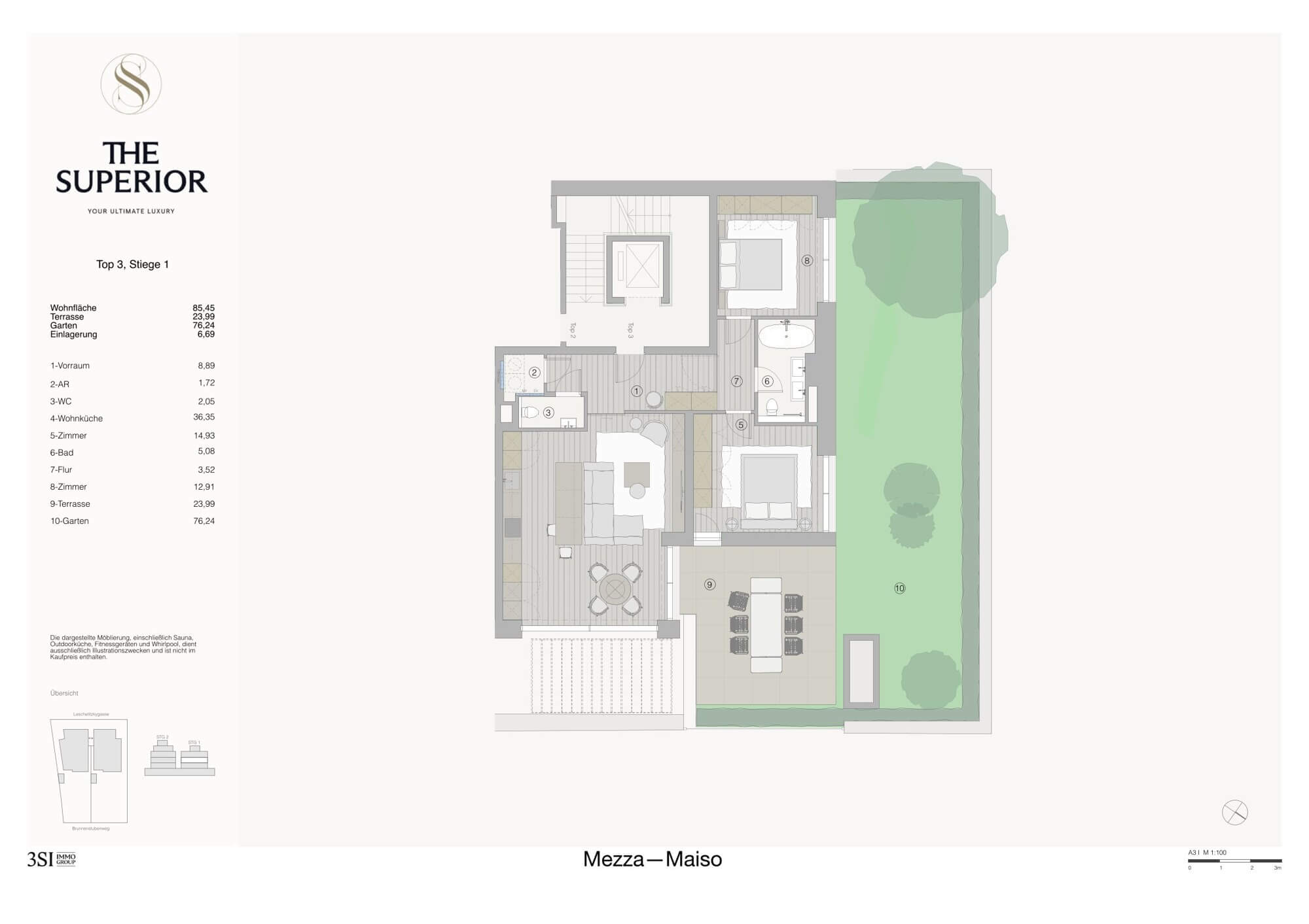 Hübsche 3-Zimmer-Wohnung mit eigenem kleinen Garten im The Superior