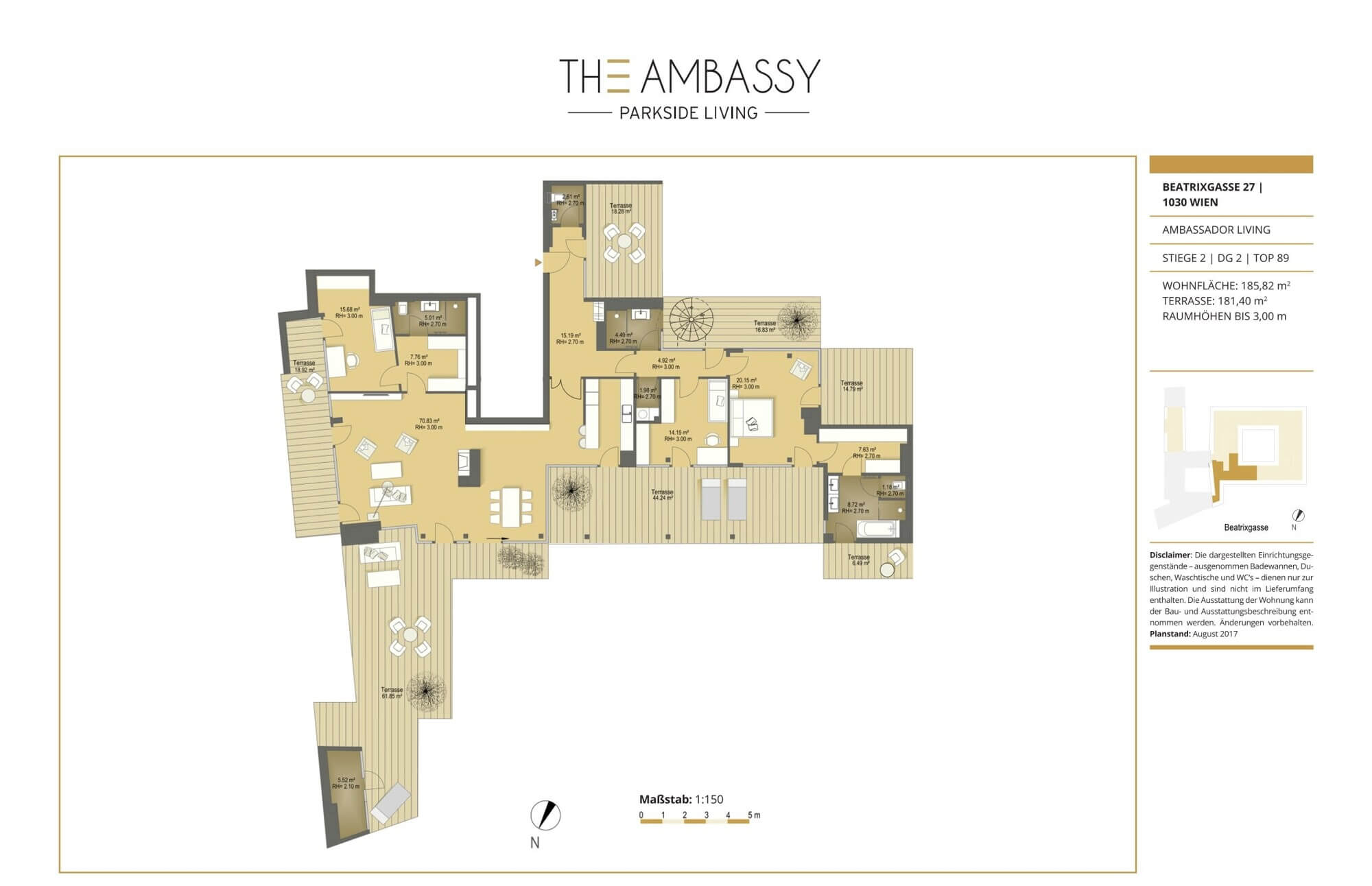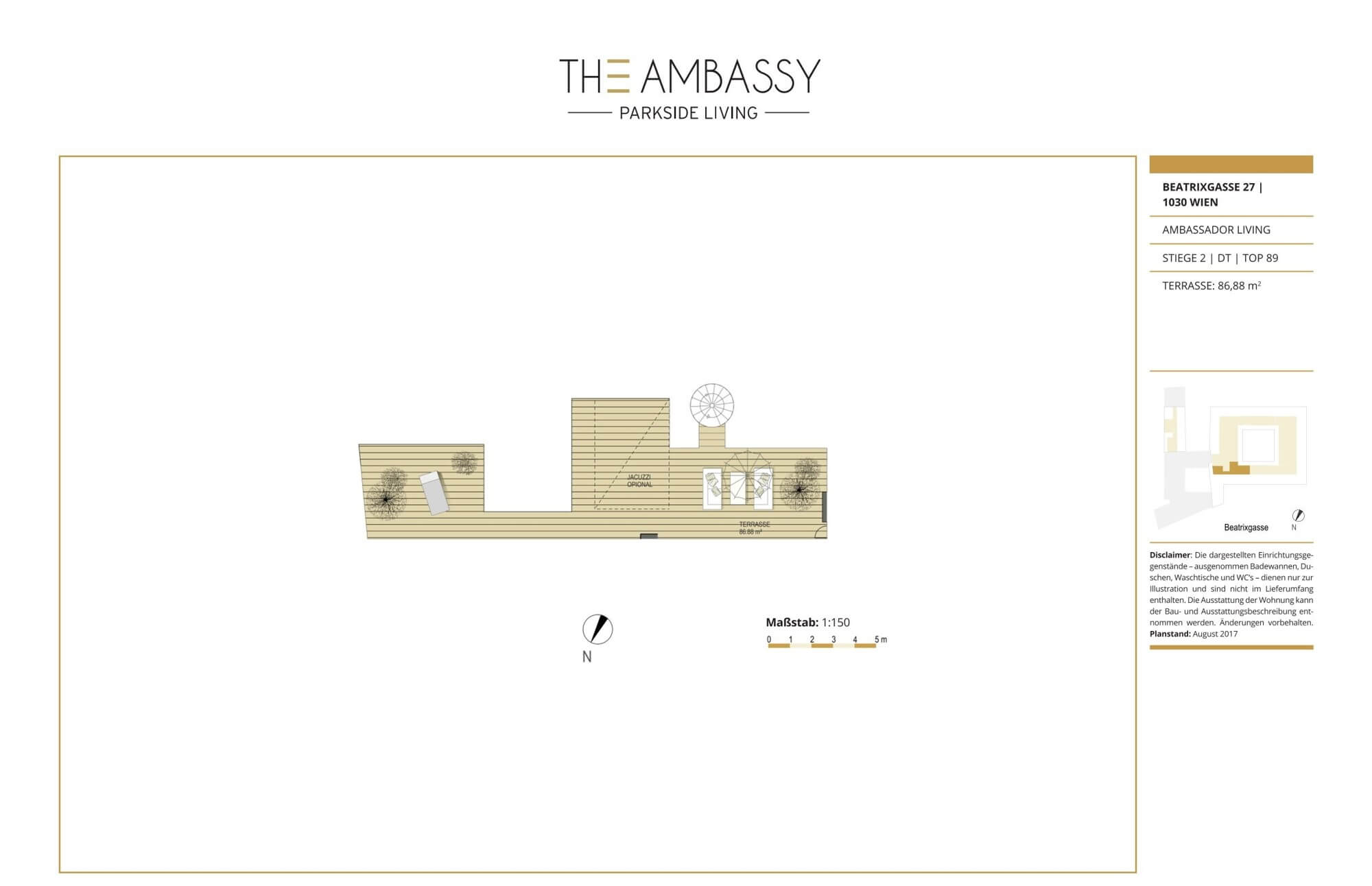 Nur wenige Gehminuten vom Wiener Stadtpark und damit in direkter Nähe zum 1. Bezirk gelegen, bietet THE AMBASSY eine einzigartige Symbiose aus urbanem Luxus, internationalem Flair und höchster Lebensqualität. Die Lage verbindet die Vorzüge einer zentralen Cityresidenz mit der Ruhe und dem Grün des Botschaftsviertels.